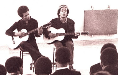 | Johnny Nash left, and Bob Marley, performing for school kids |