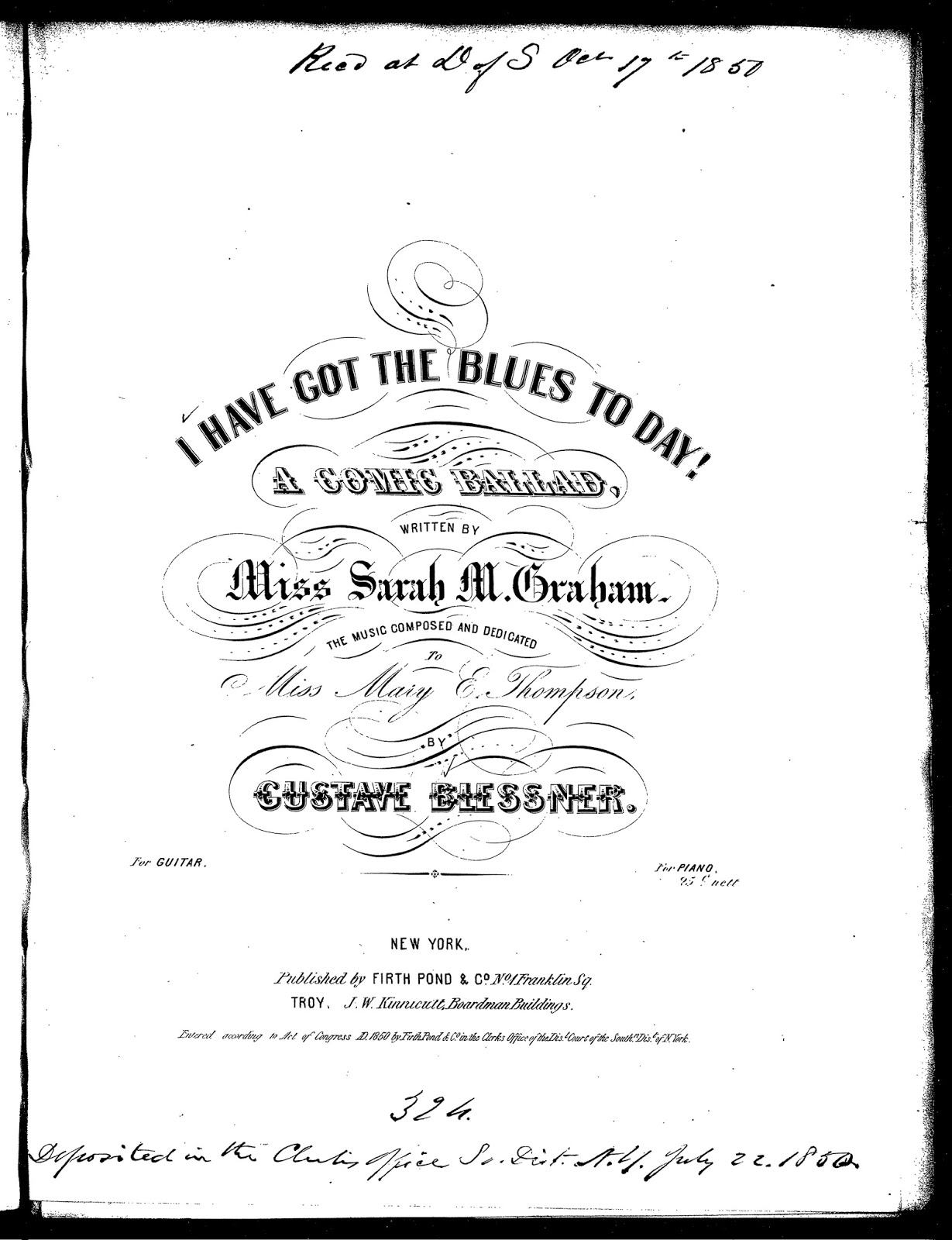 | The first published song to have the blues in the title. From 1850 and more details, of course, in the book |